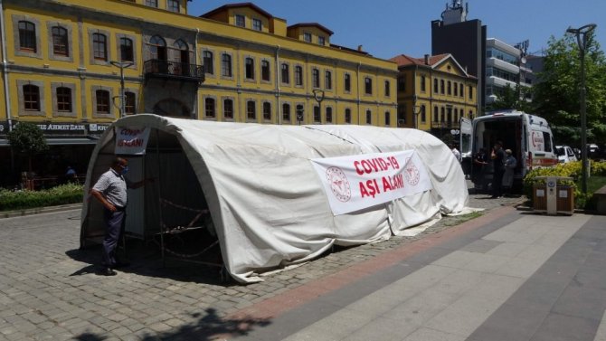Trabzon şehir merkezindeki Atatürk Alanı'na Korona virüse karşı randevulu ya da randevusuz tüm vatandaşların yararlanabileceği "Covid-19 aşı alanı" altında aşı çadırı kuruldu. Mobil aşı ekiplerinin hizmet verdiği çadırda yabancı uyruklu vatandaşlar da aşı olabiliyor.