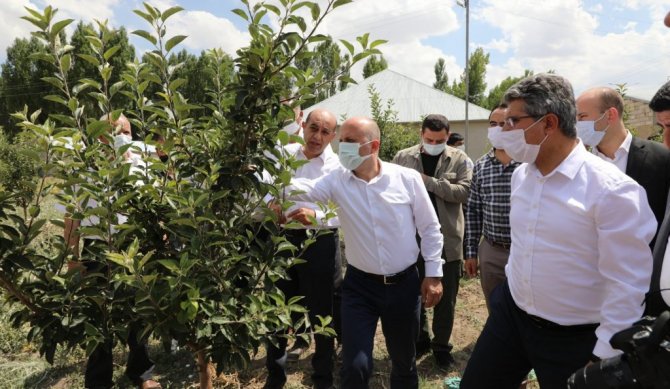 Ziyaretine Yalçınkaya köyünden başlayan Vali Varol, 2018 yılında valilik koordinesinde daha yeşil bir Ağrı oluşturmak amacıyla hayata geçirilen proje kapsamında sağlanan destekle çiftçi Kazım Kaya tarafından kurulan meyve bahçesinde incelemelerde bulundu. Çiftçi Kaya ile bir süre sohbet eden Vali Varol, 600 adet elma ağacından oluşan meyve bahçenin mahsulleri hakkında detaylı bilgi aldı.