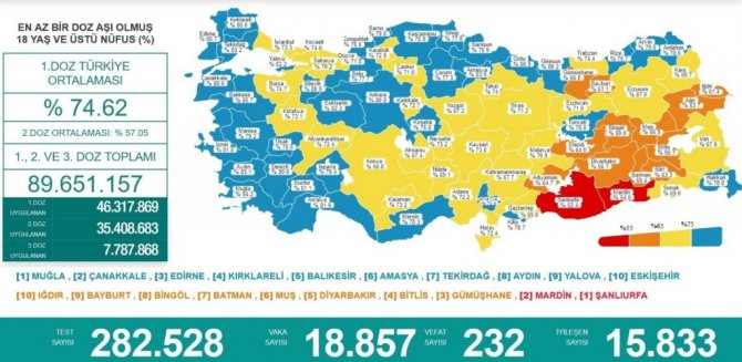 Sağlık Bakanı Dr. Fahrettin Koca'nın açıkladığı son günlük Kovid-19 tablosuna göre Samsun yüzde 76,9 aşılama oranı ile "mavi" kategoride yer alıyor. Samsun Valisi Doç. Dr. Zülkif Dağlı'nın geçici görevlendirme ile Sinop Ayancık'ta bulunması dolayısıyla kan bağışı etkinliğine katılan Samsun Vali Yardımcısı Hasan Öztürk, aşılama konusunda uyarılarda bulunarak, aşısızlara başka kısıtlamaların da gelebileceği sinyalini verdi.