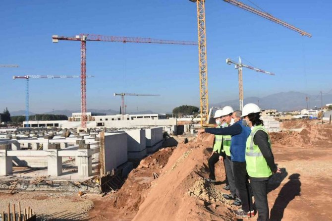 Aydın Vali Yardımcısı Cemal Şahin yapımı devam eden Aydın Şehir Hastanesi inşaatında incelemelerde bulunarak yetkililerden bilgi aldı.