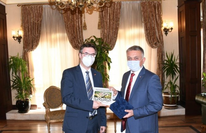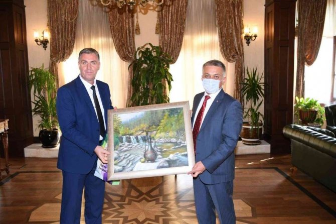 Konuklarla karşılıklı sohbetin ardından Vali Yazıcı, festival heyetiyle ziyaretin anısına hatıra fotoğrafı çektirdi.