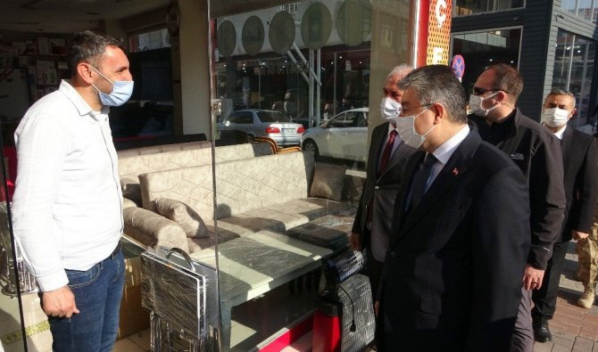 Osmaniye'de korona virüsün yayılmasının önlenmesine yönelik gerçekleştirilen denetimler devam ediyor. Palalı Süleyman Caddesi boyunca yapılan korona virüs denetimlerine katılan Vali Erdinç Yılmaz, esnaf ve vatandaşlara maske, sosyal mesafe ve temizlik kurallarına hassasiyetle uyulması konusunda uyarılarda bulundu.