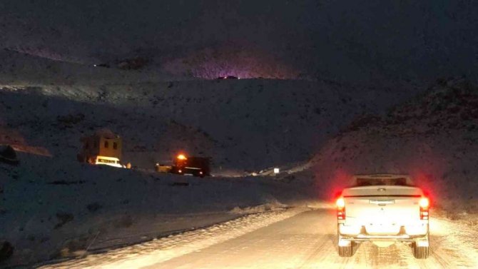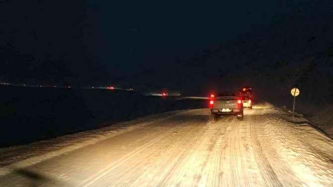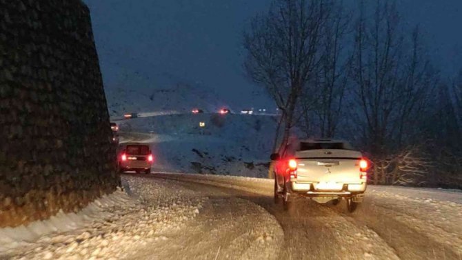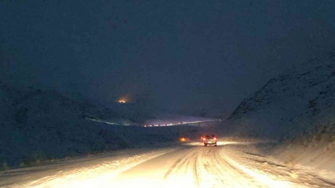 Van-Bahçesaray karayolu üzerinde bulunan 3 bin rakımlı Karabet Geçidi'nde akşam saatlerinde etkili olan kar yağışı sürücülere zor anlar yaşattı.