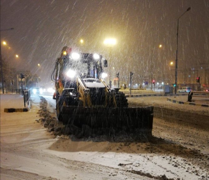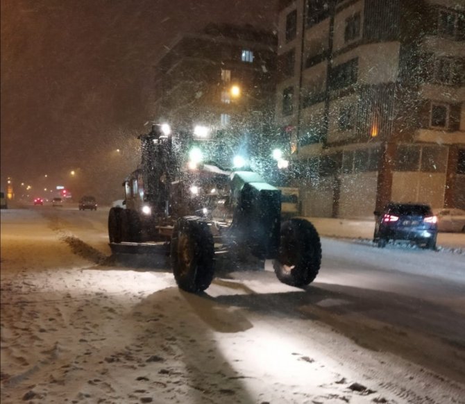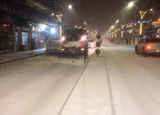 Van'da akşam saatlerinden itibaren etkili olan kar yağışıyla birlikte çalışmalarını başlatan büyükşehir belediyesi, vatandaşların herhangi bir olumsuzluk yaşamaması için yoğun mesai harcıyor. Önceden tedbir amaçlı bekletilen ekipler; Cumhuriyet, Maraş, Sıhke, Zübeyde Hanım ve Hacıbekir caddeleri başta olmak üzere kent genelindeki ana arterlerde küreme ve tuzlama çalışması yapıyor.