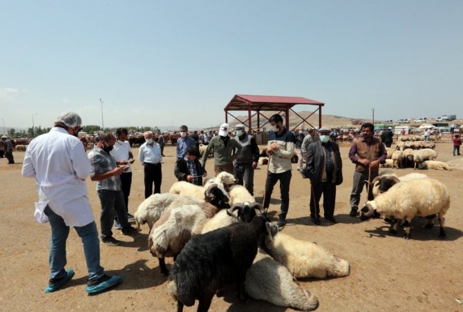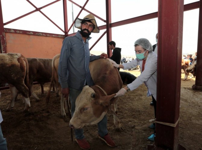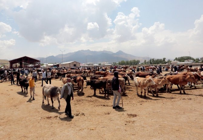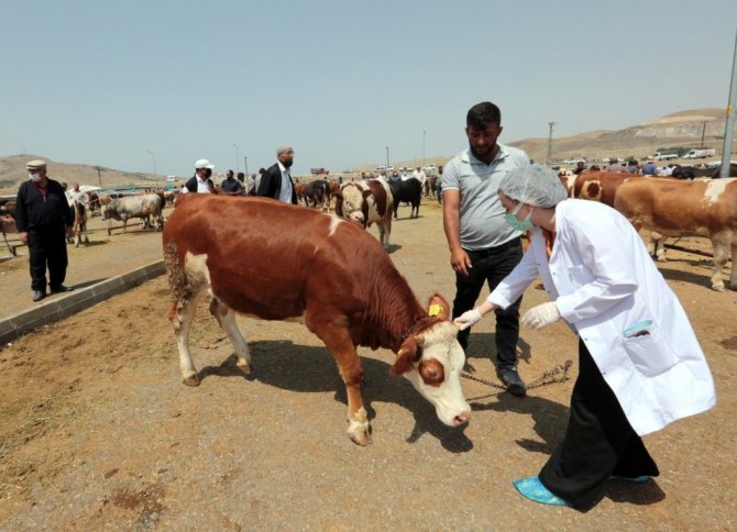 Kurban Bayramı'na günler kala kent genelinden getirilen kurbanlıklar İpekyolu ilçesi Bostaniçi Mahallesi'nde bulunan canlı hayvan pazarında satışa çıkarıldı. Pazara getirilen kurbanlıklar, Van Büyükşehir Belediyesi İşletme ve İştirakler Dairesi Başkanlığı, İl Tarım ve Orman Müdürlüğü ile Van Ticaret Borsasına bağlı veteriner hekimlerin kontrolünden sonra pazara alınırken, pazara giren tüccar ve vatandaşların da bilgilendirilmesi için çalışma yapılıyor. Vatandaşların hasta ve uygun olmayan kurbanlık almaması için küçükbaş ve büyükbaş kurbanlıkların genel muayene ve küpe kontrollerini yapan Van Büyükşehir Belediyesi veteriner hekimleri, ayrıca tüccar ve vatandaşlara korona virüs önlemlerini hatırlatan el broşürleri de dağıttı.