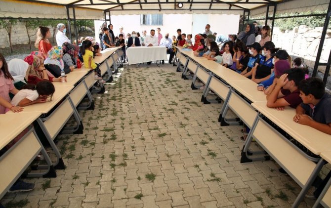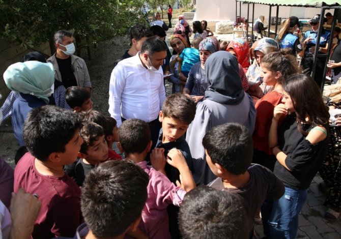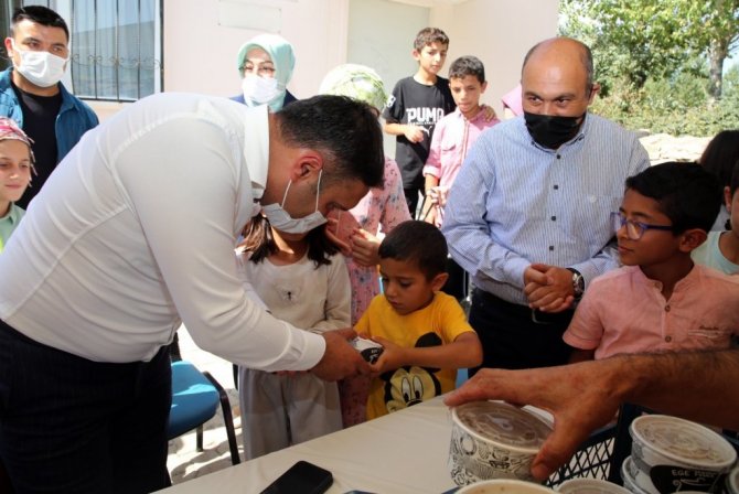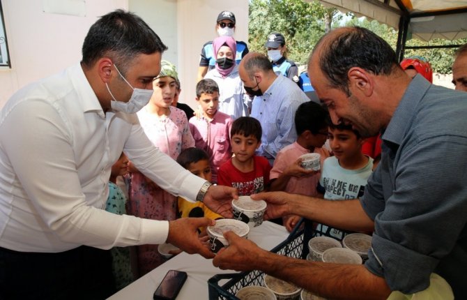 Burada çocuklarla da ilgilenen Çelikel ve beraberindekiler, Sosyal Hizmetler Daire Başkanlığına bağlı aşevinin hazırladığı aşureleri kadınlara ve çocuklara dağıttı.