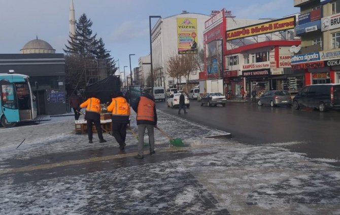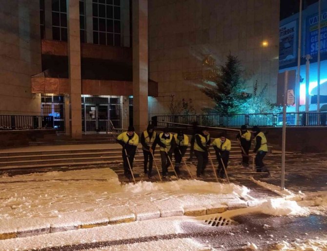 Öte yandan, kent merkezine de mevsimin ilk karı düşerken, ekipler sorumluluk alanındaki ana caddeleri ve kaldırımları temizledi.