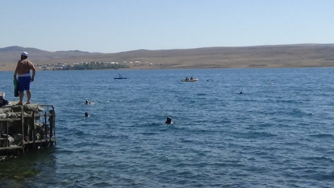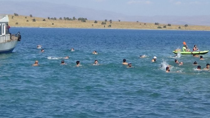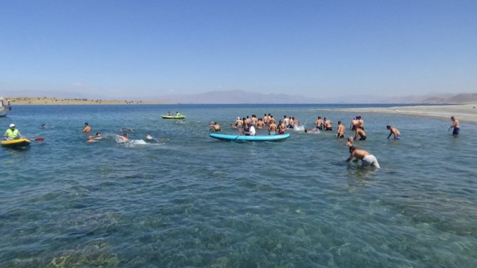 Vangölü Aktivistleri Derneği öncülüğünde Van Gölü'nün en büyük adası olan Adır Adası'nda yüzme festivali düzenlendi.