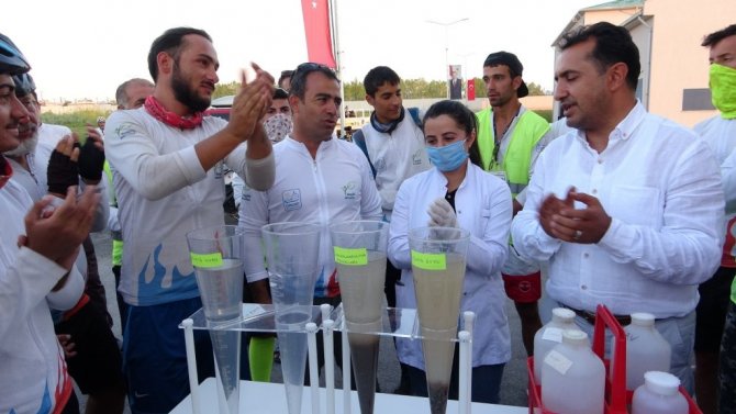 Van'da 5 Haziran Dünya Çevre Günü'nde, Cumhurbaşkanı Recep Tayyip Erdoğan'ın telekonferansla katılımıyla yapılan açılışın ardından hizmete giren İleri Biyolojik Arıtma Tesisinden alınan temiz su numunesi, Van Gölü etrafını pedallayan 150 aktiviste hediye edildi.