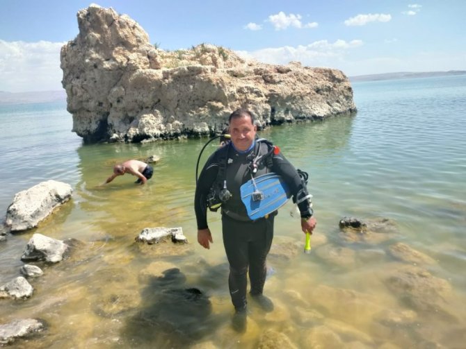 Türkiye Su Altı Sporları Federasyonu Dalış Eğitmeni Adem Tekin, "Dalış yapmak için bulunduğumuz yer Van ili Erciş ilçesinde suya girdik. Su içeresinde arkamda gördüğünüz oluşumun içerisinde bir mağaranın olduğunu keşfettik. İçerisine girdiğimde mağaranın farklı odalarının olduğunu aynı zamanda küçük bir penceresinin bulunduğunu keşfettim. Daha sonra yükseldikten sonra mağara içerisinde oksijenin bulunduğu görünce mapsımı ağzımdan çıkarıp orada ayriyeten nefes aldım. Gizemli bir yerde bulunan Van denizinin bölge halkının tabiriyle. Gerçekten daha gizemli yerlerin bulunduğunu keşif edilerek bulunabileceğini kendim taaccüp ettim. Tüm dalışa gönül vermiş arkadaşları Van'a dalış yapmaya bekliyorum" dedi.