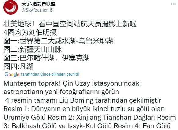 Çin İnsanlı Uzay Programı Ajansı (CMSA) Astronotu Liu Boming tarafından çekilen "Van Gölü" fotoğrafı dünyayla paylaşıldı.