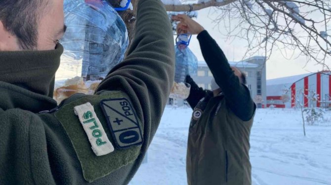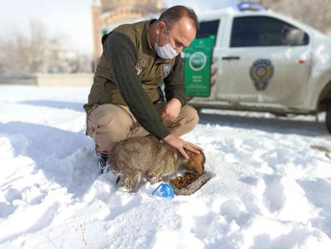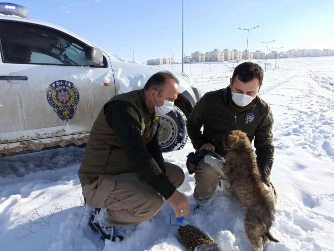 Van Emniyet Müdürlüğü ekipleri, etkili olan kar yağışının ardından sokak hayvanları için koruma ve besleme faaliyeti gerçekleştirdi.