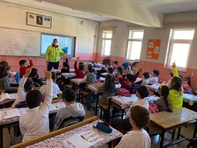 Trafik Denetleme Şube Müdürlüğü ekipleri, 2021-2022 eğitim öğretim yılında alınacak trafik tedbirleri kapsamında ilk olarak Salih Yıldız İlkokulunda "Trafik Dedektifleri" projesi kapsamında öğrencilere trafik eğitimi verdi.