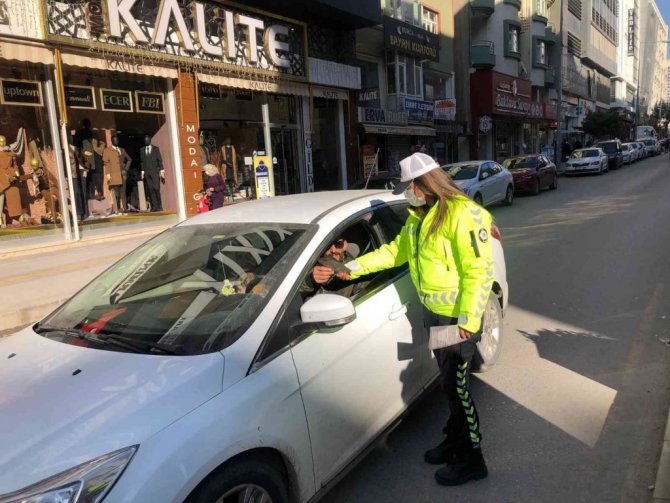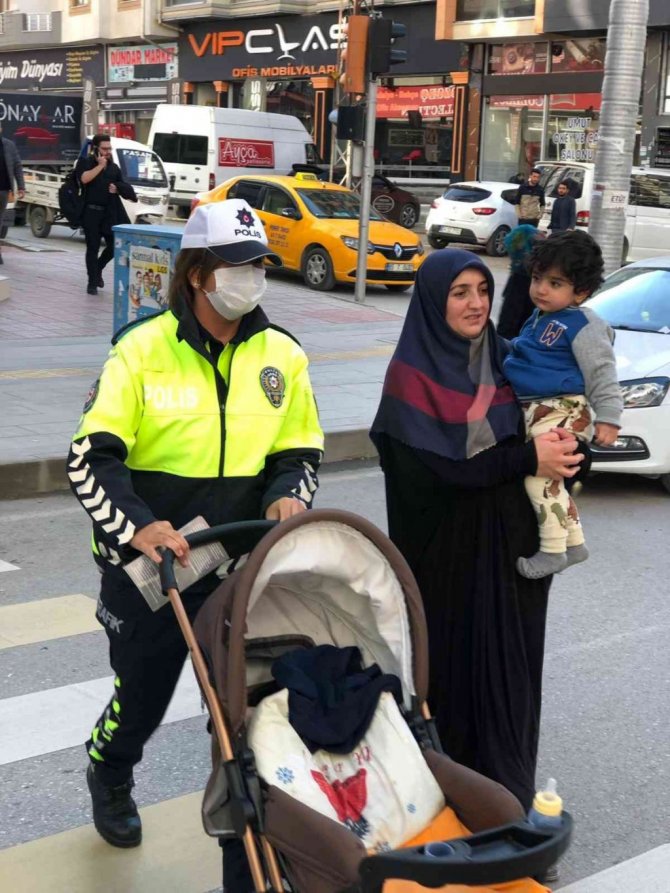 Polis ekipleri, daha sonra sürücü ve yaya eğitimleri kapsamında Eski Cezaevi Kavşağı'nda sürücü ve yayalara trafik güvenliği ile ilgili bilgilendirmede bulundu.