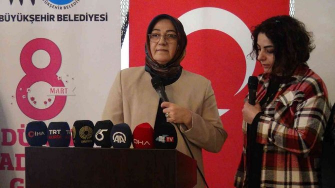 Kadın ve Aile Hizmetleri Daire Başkanı Selma Biçek ise 8 Mart Dünya Kadınlar Günü vesilesiyle bir araya geldiklerini belirterek, "Bu özel günde sizlerle bir arada olmanın mutluluğunu yaşıyoruz. Büyükşehir Belediyesi Kadın ve Aile Hizmetleri Daire Başkanlığı olarak her kadınımız bizler için kıymetli ve özeldir. Ülkemize ve ilimize misafir olarak gelen siz değerli kadınlarımızın da istekleri, beklentileri ve refah içinde yaşamaları bizler için önemlidir. Ayrıca daire başkanlığımız bünyesinde yaşam boyu öğrenme kurslarımızda büyük bir özveriyle çalışan kadınlarımıza altın bilezik kazandıran değerli usta öğreticilerimizle de bir arada olmaktan büyük mutluluk duyuyorum. Hepiniz bizim için sosyal statü, din, dil, ırk ayrımı yapmadan çok özel ve kıymetlisiniz. Sadece bugün değil her zaman yanınızda olduğumuzu bilmenizi istiyorum. 8 Mart dünya Kadınlar Gününüzü kutluyor, keyifli bir program olmasını diliyorum" ifadelerini kullandı.