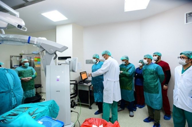 Doç. Dr. Abdurrahman Aycan ise, mikroskobun 4K görüntülemeyle robotik ve hibrit beyin cerrahi teknolojisine ve floresan filtrelere sahip olması sayesinde tümör ve damarlar işaretlenerek kanamalar durdurabildiğini ve tümör vakalarında güvenli cerrahi yapılabildiği bilgilerini paylaştı.
