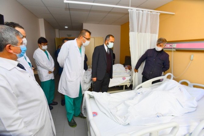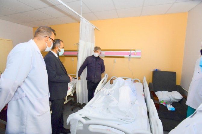 Rektör Yardımcısı Prof. Dr. Şefik Tüfenkçi, Tıp Fakültesi Dekanı Prof. Dr. Mustafa Tuncer, Başhekim Dr. Öğretim Üyesi Ümit Haluk İliklerden ile birlikte hastalara geçmiş olsun dileklerini ileten Rektör Şevli, daha sonra hastaneden ayrıldı.