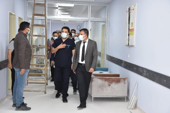 İl Sağlık Müdürü Prof. Dr. Mahmut Sünnetçioğlu, hastaneyi ziyaret ederek, Başhekim Doç. Dr. Sebahattin Çelik'ten yürütülen çalışmalar hakkında bilgi aldı. Ziyaretin ardından açıklamalarda bulunan Başhekim Doç. Dr. Sebahattin Çelik, daha iyi hizmet verebilmek için birçok yeniliği gerçekleştirdiklerini belirterek, "Yürüttüğümüz hizmetlerin başında 3. basamak 29 yataklı erişkin yoğunbakım gelmektedir. Bu nedenle 3. basamak yoğun bakım ünitelerinin açılması için mülkiye amirlerimizin ve İl Sağlık Müdürümüz Prof. Dr. Mahmut Sünnetçioğlu ve beraberindeki heyet hastanemizde incelemelerde bulunmuş ve çalışmaların bir an önce başlatılması talimatını vermiştir. Bizde 3. basamak 29 yataklı yoğun bakım ünitesinin açılmasına start vererek gerekli fiziki çalışmalar başlatılmış olup, inşaat çalışmalarını bitirerek gerekli tescil başvurularını yaptık" dedi.