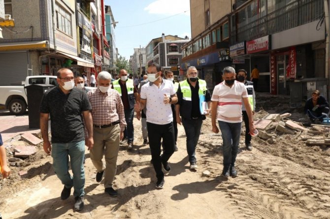 Van'ın İpekyolu Kaymakamı ve Belediye Başkan Vekili Sinan Aslan, Yüzbaşıoğlu Caddesinde başlatılan yenilenme çalışmalarını yerinde inceledi.