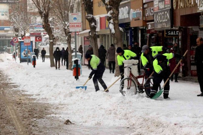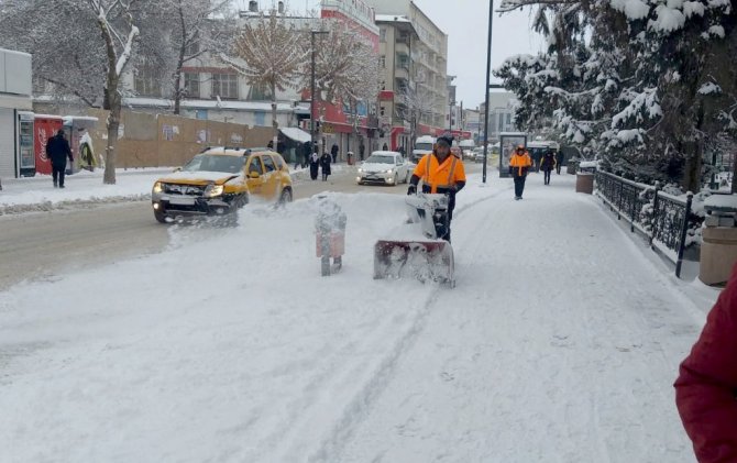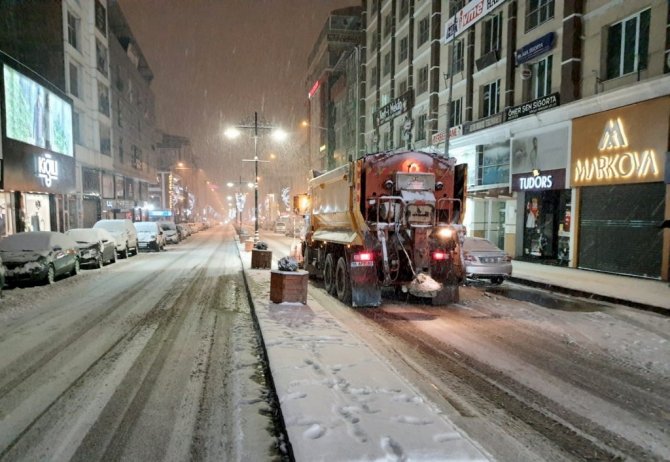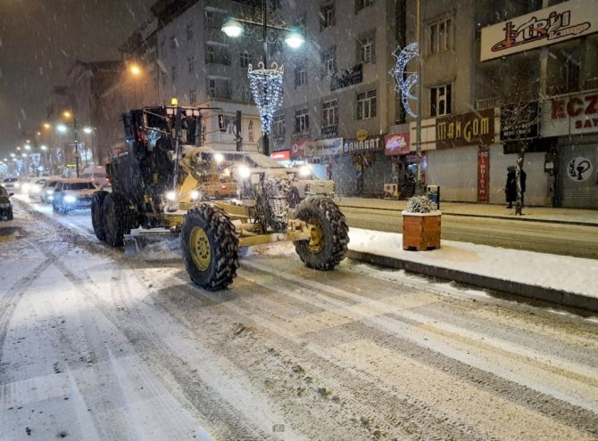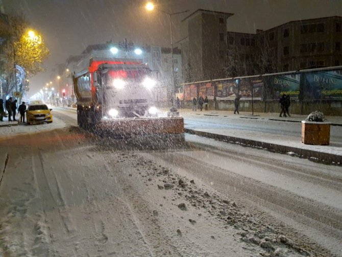 Van Büyükşehir Belediyesi gece saatlerinde etkili olan kar yağışının ardından karla mücadele çalışması başlattı.