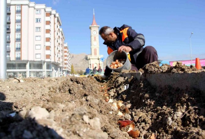 Van Büyükşehir Belediyesi, bahar aylarında park, bahçe ve caddeleri renklendirecek lale soğanlarının dikimini yaptı.