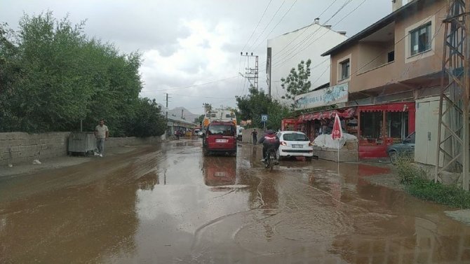 Van'ın İpekyolu ilçesinde öğle saatlerinde bastıran sağanak yağış sonrası oluşan sel hayatı olumsuz etkiledi.