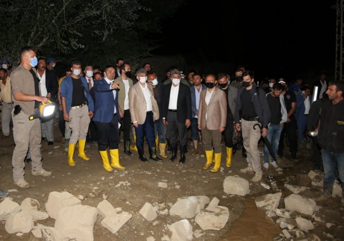"Cumhurbaşkanımız ve hükümetimizin geçmiş olsun dileklerini iletiyoruz. İnşallah böyle afetlerle bir daha karşılaşmayız. Ama devletimiz güçlüdür. Devletimiz ve milletimiz el ele verdiği sürece biz bu zorlukları da en kısa sürede aşarız. Elbette tedbirlerimizi alıyoruz. Meteorolojik şartlar yağışların devam edeceği yönünde. Burada tekrar vatandaşlarımızı uyarmış olalım. Bir daha böyle bir sel afetiyle karşılaşmamak için kişisel tedbirlerimizi alalım. Diğer tedbirleri de biz devlet olarak zaten alıyoruz."
