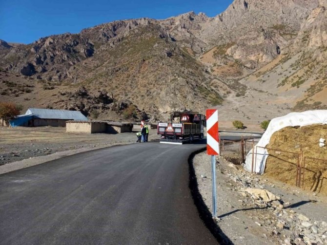 Öte yandan, Çatak ilçesi Konalga Mahallesi'nde de tek çizgi bazlı 19 kilometrelik yol şerit çizgi boyamaları yapılarak, 50 adet omega levha direği ve 62 adet trafik işaret uyarı levhaları konuldu.