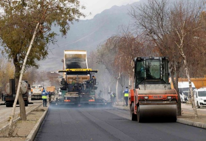 Van Büyükşehir Belediyesince "Prestij Cadde Projeleri" kapsamında yenilenen Erek Dağı Caddesi asfaltlanıyor.