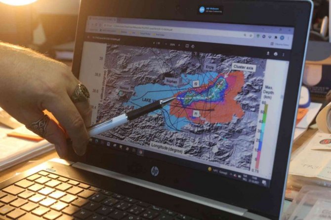 "Erçek Gölü'nde yüksek çözünürlüklü göl sismiği yaptık. Erçek Gölü'nün kuzey ve kuzey batısında çok belirgin gaz çıkışları görüyoruz. Küçük ve büyük depremlerin ürettiği stres ve bölgenin sıkışmalı tektonik yapısından kaynaklı olarak göl tabanındaki gazın sıkışarak dışarı doğru çıktığını görüyoruz. Erçek Gölü'nde büyük oranda deprem potansiyeli barındırdığı bu gaz çıkışlarında çok net bir şekilde anlaşılıyor. Gaz çıkışlarını takip ettiğimizde, gaz çıkışı güzergahının kuzeye doğru ve aynı zamanda batıya doğru olduğunu da haritaladık. Erçek Gölü'ndeki gaz çıkışları, Çarpanak Yarımadası'nda meydana gelen küçük deprem fırtınalarının bölgenin yükselmekte, sıkışmakta ve kırılması gereken fayların hâlâ var olduğunu göstermektedir. Dolayısıyla gelecekte buralarda yine büyük deprem potansiyeli bulunmaktadır. Ama son günlerde meydana gelen deprem fırtınalarına bakarak büyük bir deprem olacağını söylememiz mümkün değildir."