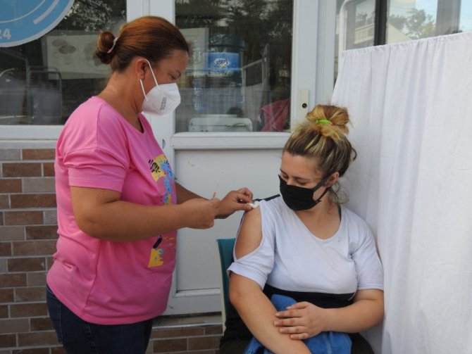 Pazarın girişine kurulan standa hem vatandaşlar hem de esnaflar yoğun ilgi gösterdi. Hastaneye gitme fırsatı bulamayan vatandaşlar ve esnaflar standa gelerek aşı oldu.