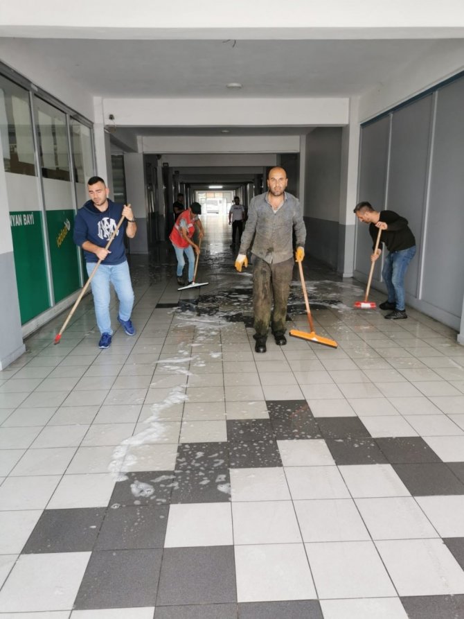 DÜZCE (İHA) – Kaynaşlı Belediyesi, ilçe meydanında bulunan iş merkezini vatandaşlar ile birlikte yıkayarak temizledi.