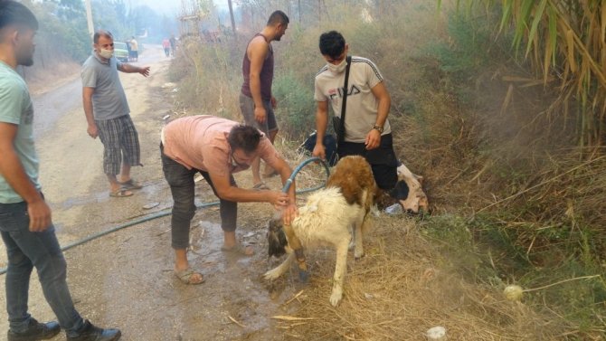 Vatandaşlar ve ekipler mahallelerde mahsur kalan hayvanları kurtarmak için adeta seferber oldu. Çeltikçi Mahallesi'nde yanan samanlıktaki köpek sahipleri tarafından alevlerin arasından çıkarılırken, yangından etkilenen bir inek vatandaşlar tarafından su sıkılmak suretiyle saklandığı çukurdan çıkarıldı.