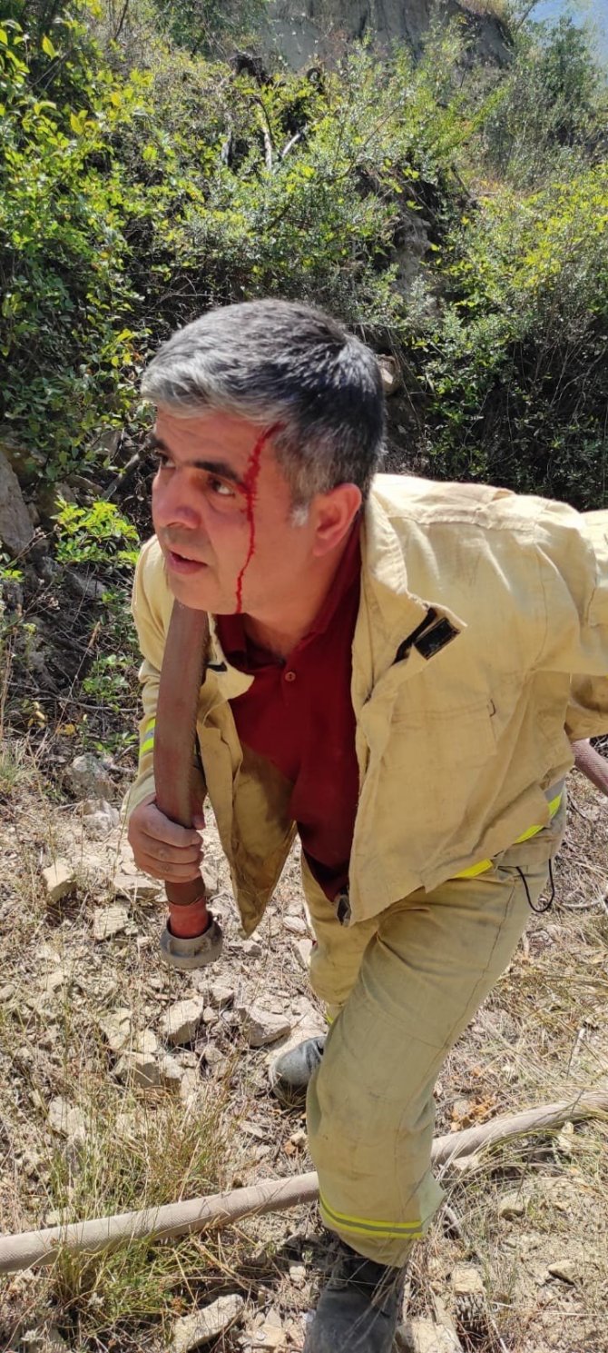 Öte yandan Yenice Orman İşletmesi'nde görevli arazöz şoförü İlker Kara Döngel başından yaralanmasına rağmen yangını söndürme çalışmalarına devam ettiği görüldü.