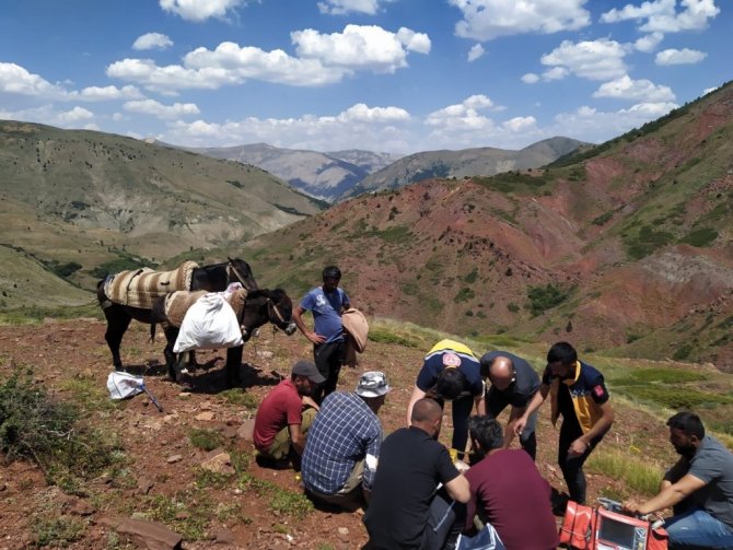 Bingöl'de rahatsızlanan 62 yaşındaki hasta için 2 bin 500 rakımlı Bilice yaylasına sağlıkçıların malzemeleri at ve eşek sırtında kendileri ise yaya ulaştı. İlk müdahalesi yapılan hasta bölgeye sevk edilen helikopterle Erzurum Şehir Hastanesi'ne kaldırıldı.