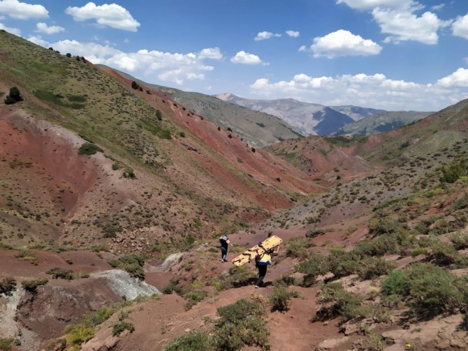 Vefakar sağlıkçılar, 2 bin 500 rakımdaki hastaya yaya ulaştı, ambulans helikopterle hastaneye gönderildi