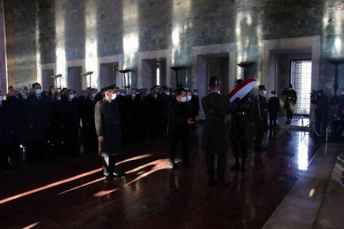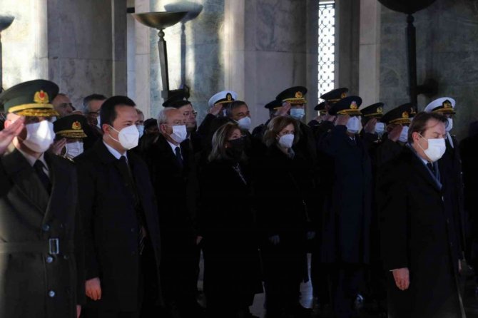 Aslanlı yolda yürüyen heyet, ilk olarak Cumhurbaşkanlığı İdari İşler Başkanı Şentürk tarafından Mustafa Kemal Atatürk'ün kabrine çelenk bırakmasının ardından saygı duruşunda bulunuldu. Daha sonra İnönü'nün kabrinin bulunduğu alana geçildi. İsmet İnönü'nün öz geçmişinin okunmasının ardından Cumhurbaşkanlığı adına Şentürk, Türk Silahlı Kuvvetleri adına Genelkurmay 2. Başkanı Selçuk Bayraktaroğlu, CHP adına CHP Genel Başkanı Kılıçdaroğlu ve ailesi adına İsmet İnönü'nün kızı Özden Toker kabrine çelenk bıraktı. Tören, saygı duruşunun ardından ailesinin İnönü'nün kabri başında taziyeleri kabul etmesi ile son buldu.