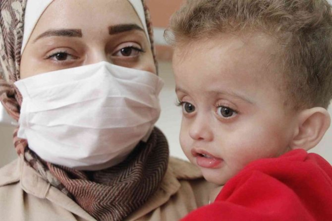 Karnından beslenen Suriyeli 13 aylık Velid Neccar bebek, yemek borusu olmadığı için Mustafa Kemal Üniversitesi Araştırma ve Uygulama Hastanesi'nde 3 hafta önce tedavi altına alındı.