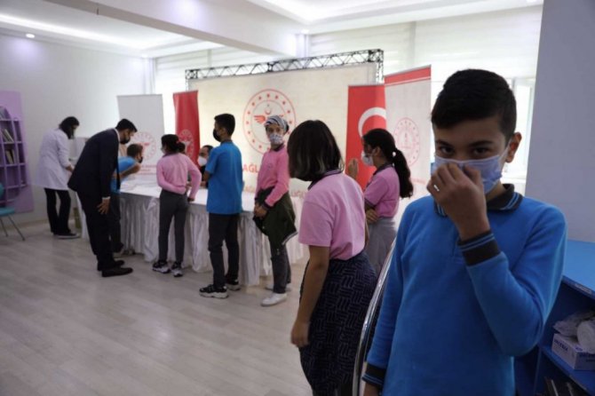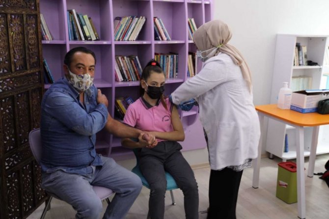 Babası ile birlikte aşı olan 7'nci sınıf öğrencisi Semanur Eylül Kodalak, "Çok güzel uygulama. Bütün öğrenciler aşı olabilir" şeklinde konuştu.