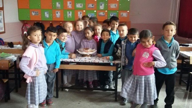 Kütahya’nın Hisarcık ilçesi Atatürk İlkokulu’nda 1. sınıfta öğrenim gören öğrencilerin okuma yazma çalışmalarına veliler evlerinde yaptıkları kek ve kurabiyelerin üzerlerine isimlerini yazarak destek veriyorlar.