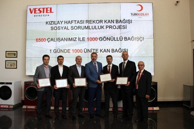 Manisa Organize Sanayi Bölgesinde faaliyette bulunan Vestel Grubuna bağlı Beyaz Eşya Fabrikası sosyal sorumluluk projesiyle rekor kan bağışı kampanyası düzenledi. 6 bin 500 çalışanı olan fabrikada bir günde bin ünite kan hedefi konularak bir fabrikada toplanan en fazla kan bağışına ulaşılarak bir Türkiye rekoru kırılması bekleniyor.