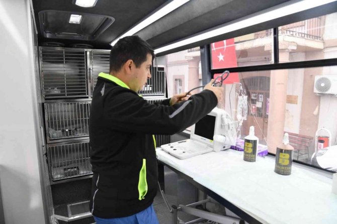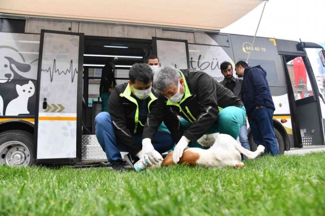 Balıkesir Büyükşehir Belediyesi, Mobil Veteriner Kliniği "Vetbüs" hizmeti ile sokak hayvanlarına sahip çıkıyor.