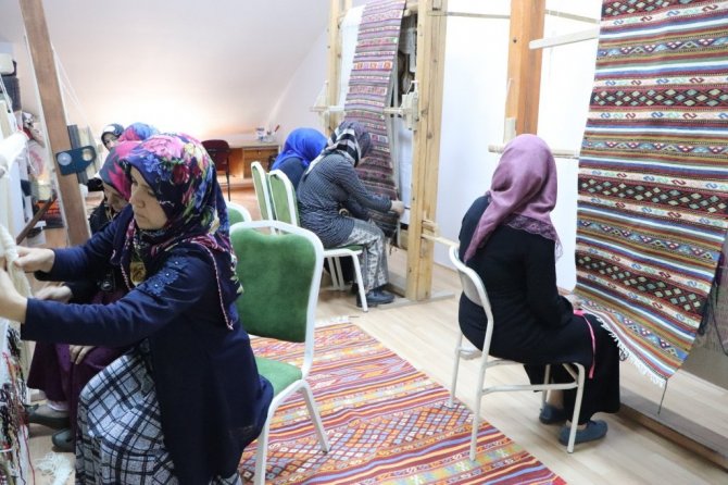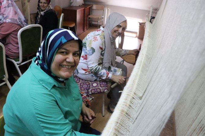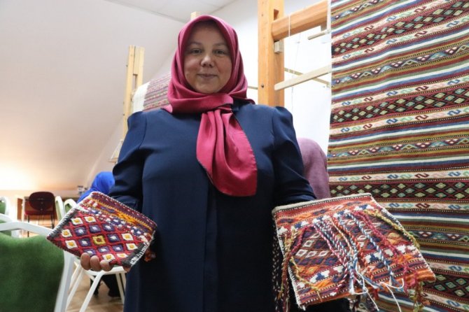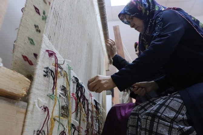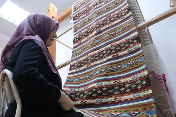 Samsun Vezirköprü Halk Merkezi'nde "cicim" dokuma tekniği ile üretilen kilimler dünyaya pazarlanıyor.