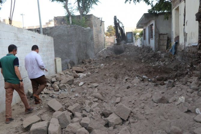 Fen İşleri Müdürlüğü ekipleri, Kale Mahallesi 103.Sokak'ta yolu daraltan metruk yapıları yıkarak, yolu genişletti. Genişletilen yola, hem araç hem de yayaların güvenli kullanımını sağlayacak. Yol kilitli parke taşı ile döşenip ve yeni kaldırımlar yapılacak.