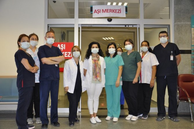 Eskişehir Yunus Emre Devlet Hastanesi'nde görev yapan sağlık çalışanları, kendi birimlerindeki görevlerinin yanında aşı merkezine de destek olarak binlerce doz aşı uyguladılar. Ekibin her üyesi ortalama 5 bin doz aşı uyguladı.