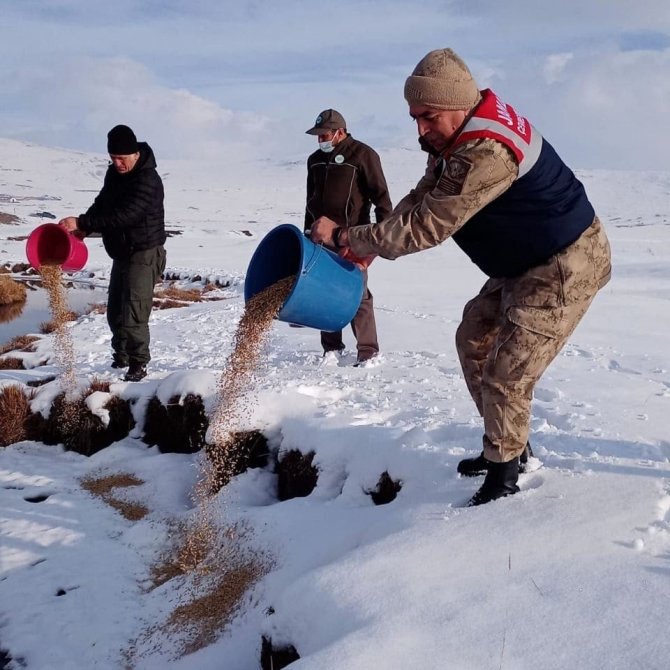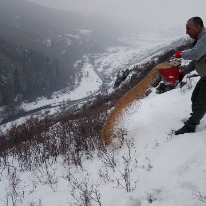 Çetin kış şartları nedeniyle yiyecek bulmakta zorlanan yaban hayvanları için doğaya yem bırakıldı.
