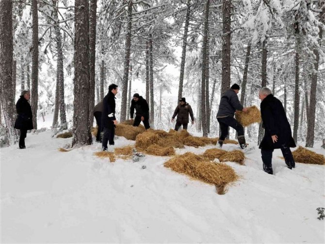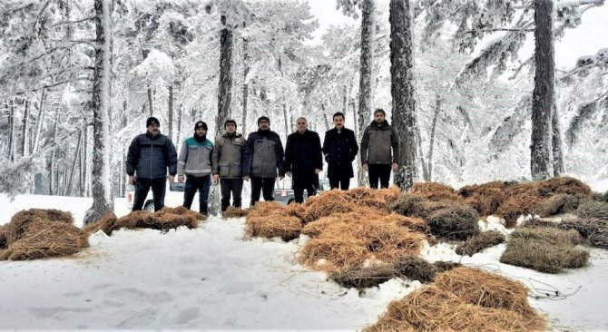 Yaban hayvanları için doğaya yem bırakıldı