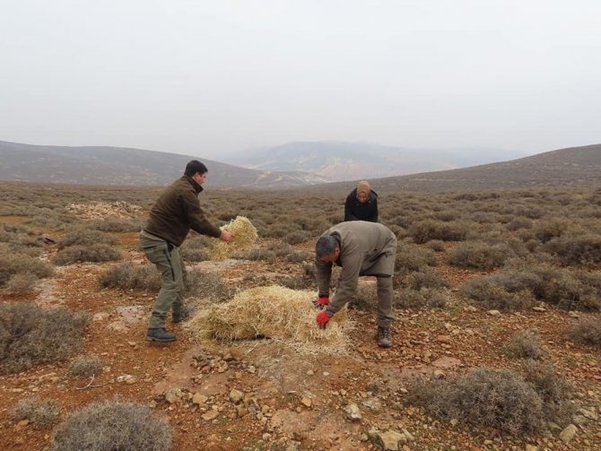 Doğa Koruma ve Milli Parklar Kilis Şube Müdürlüğü tarafından yabani hayvanlar için avlaklara bir ton yem bırakıldı.