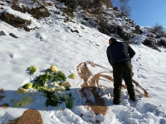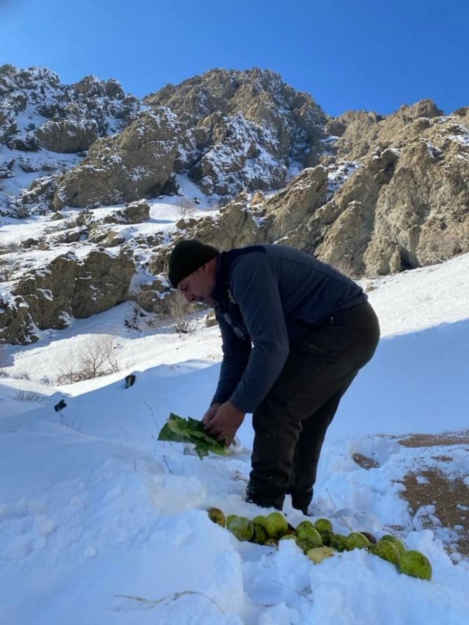Doğu Anadolu'da yüksek kesimlerinde etkili olan yoğun kar yağışı sonrası yiyecek bulmakta zorlanan yaban hayvanları için doğaya yem bırakıldı.