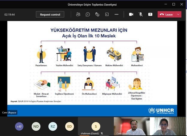 Yunusemre Belediyesi, Birleşmiş Milletler Mülteciler Yüksek Komiserliği (UNHCR) İzmir Ofisi, Türkiye'de eğitim gören yabancı uyruklu öğrencilerin üniversite öğrencileri arasındaki iletişimi güçlendirmek, bilgi alışverişini sağlamak, Türk ve yabancı uyruklu öğrencilerin uyumunu arttırmak için çevrimiçi rehberlik toplantısı düzenlendi. Toplantıya Manisa Celal Bayar Üniversitesi Sosyal Hizmet Bölümü Öğretim Üyesi Rana Dayıoğlu Oyman ile bölüm öğrencileri de katılırken; toplantıda Yüksek Öğretim Sınavı'na hazırlık ve başvuru süreçleri, yabancı öğrenciler için burs programları, üniversiteye kayıt süreçleri, harç ücretleri, kariyer tavsiyeleri, meslekler hakkında bilgilendirme, yabancı öğrenciler için iş imkânları konuları UNHCR Ankara ofisinden Eğitim ve İstihdam biriminden katılan uzmanlar eşliğinde ele alındı.